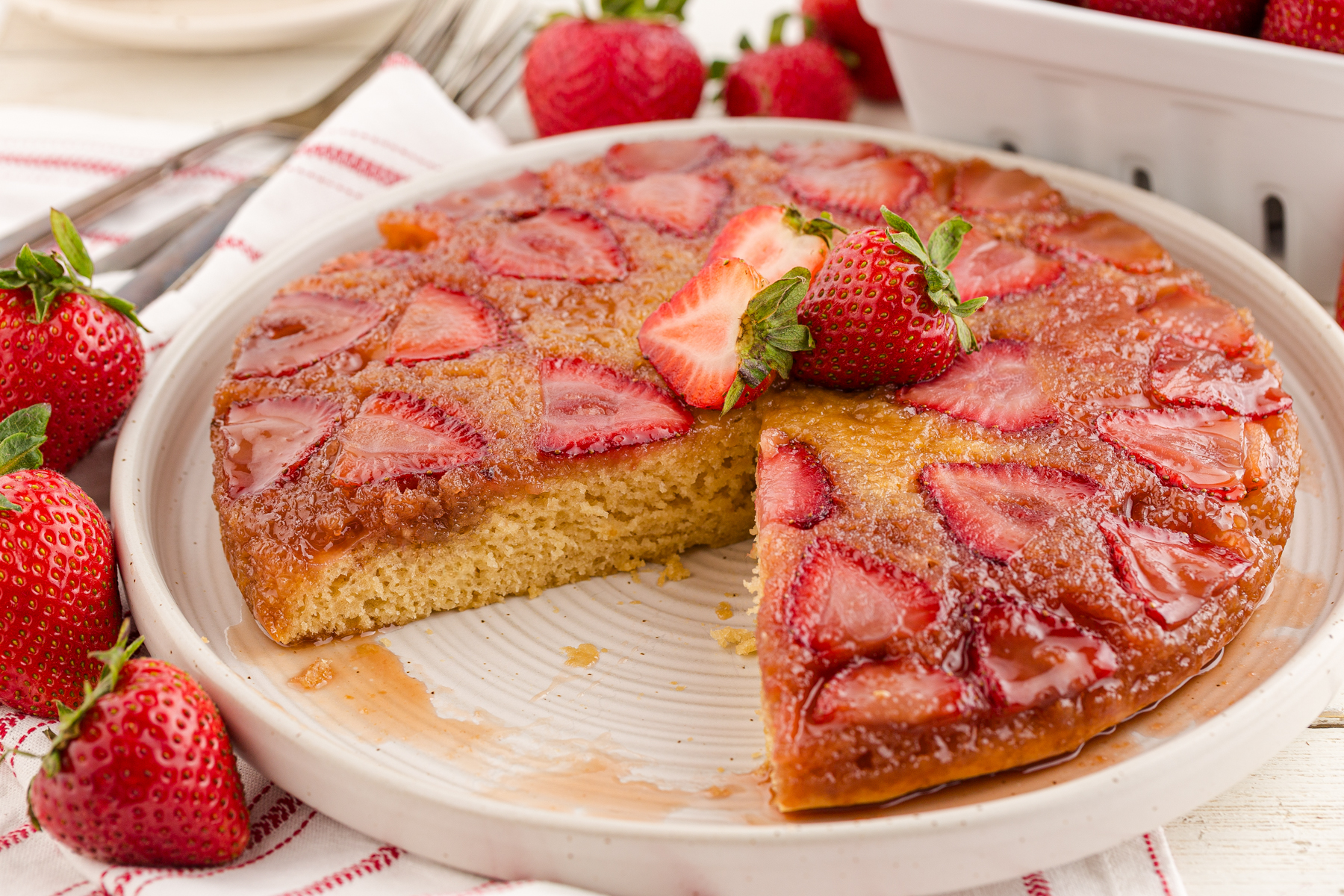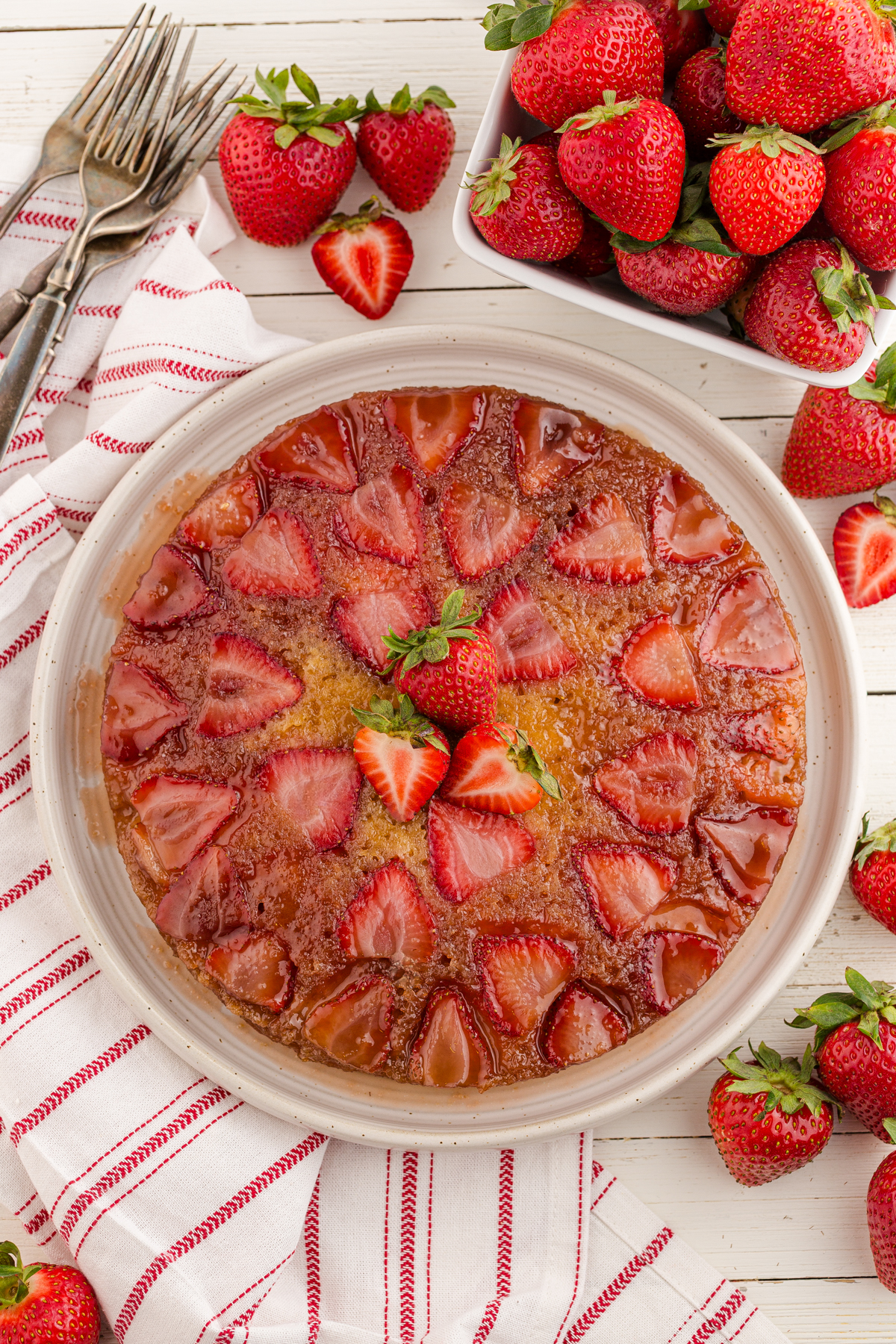 This strawberry upside down cake is a show-stopping dessert that turns everyday ingredients into something special!